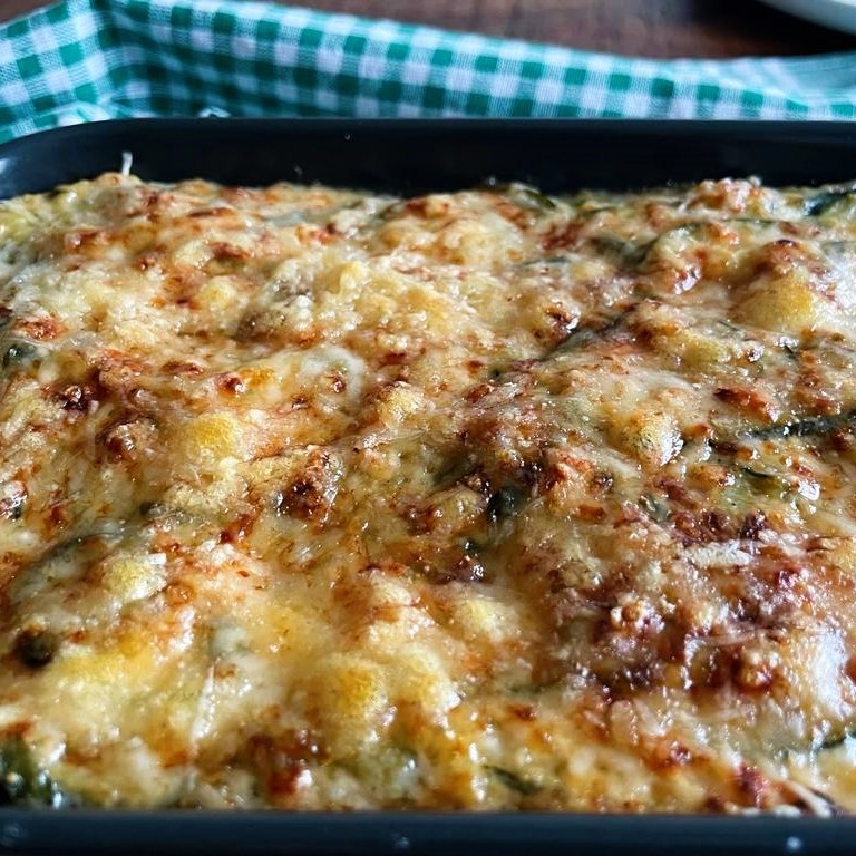 - Season with salt, pepper and nutmeg. Careful not to oversalt at this stage, the courgettes are quite salty and cheese will add more salt.