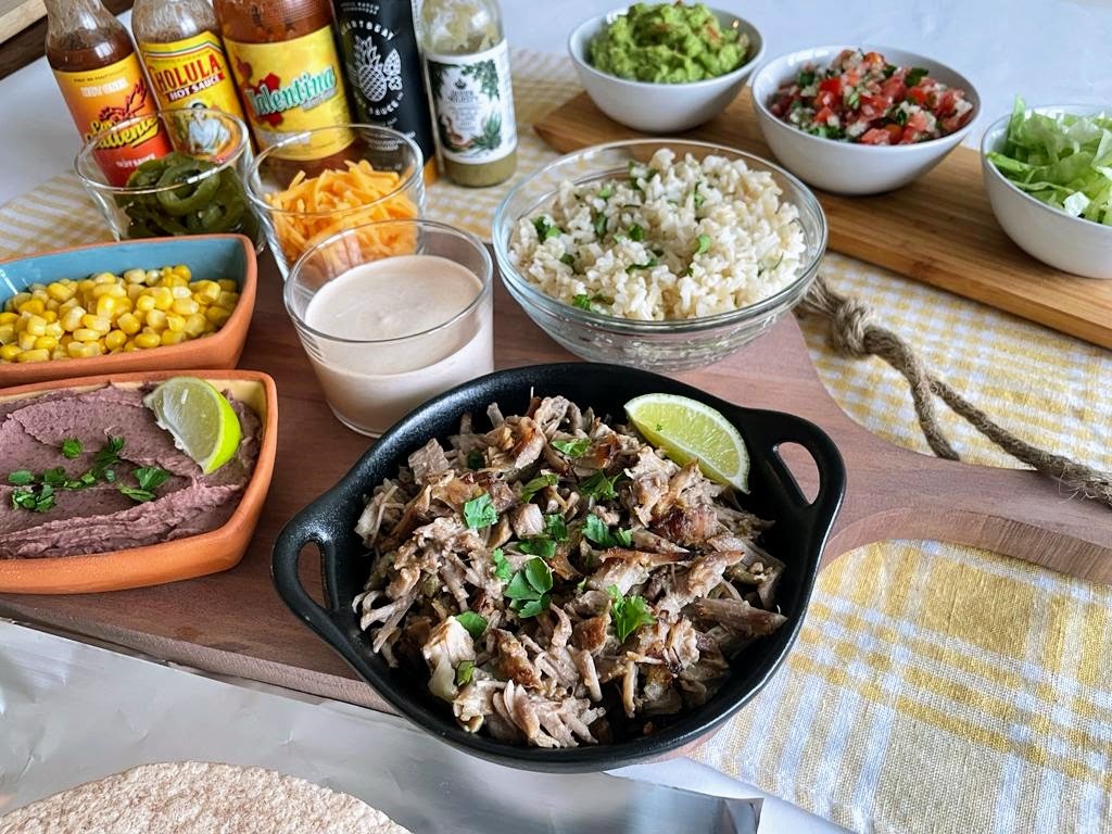 | Pork carnitas | • Pulled chicken • Beef • Vegetarian: sauteed peppers (pepper strips sautéed with taco seasoning) |