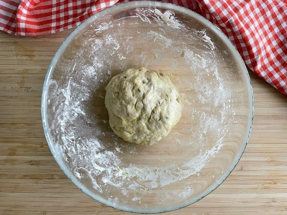 - Leave in the bowl and cover with a damp towel. Place in a warm spot in the kitchen and let rise until it doubles in size (about 2h).