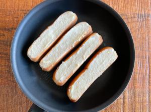 - Butter the sides of the bun, and toast in a pan (picture 1) until each side is golden brown.