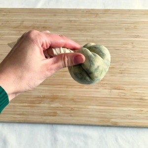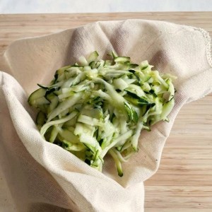 3. After 30min, place the zucchini in a clean tea towel, or cheese cloth, and twist over a sink or bowl to remove as much liquid as possible (pictures 2 and 3).