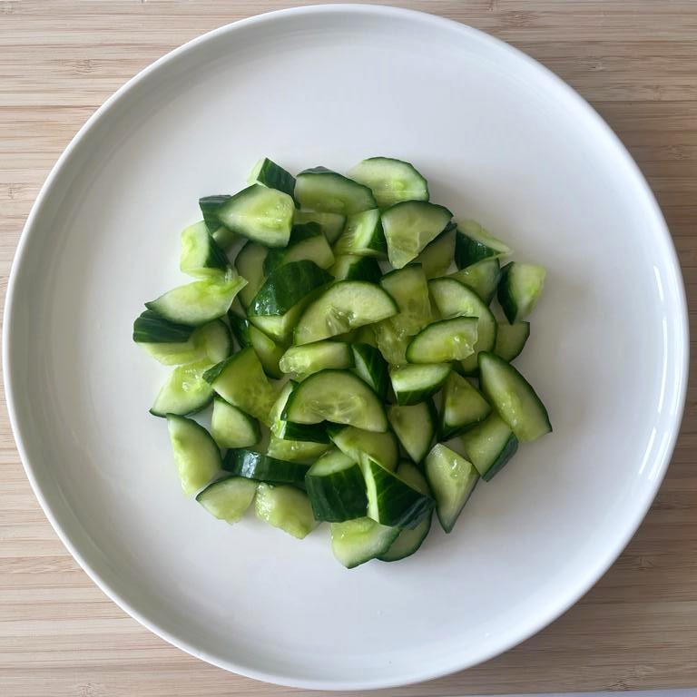 - Plate the cucumber (1/2 a cucumber per plate), or place in a bowl to mix and serve family style.