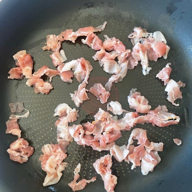- Add the diced bacon to a cold pan. Spread out evenly.