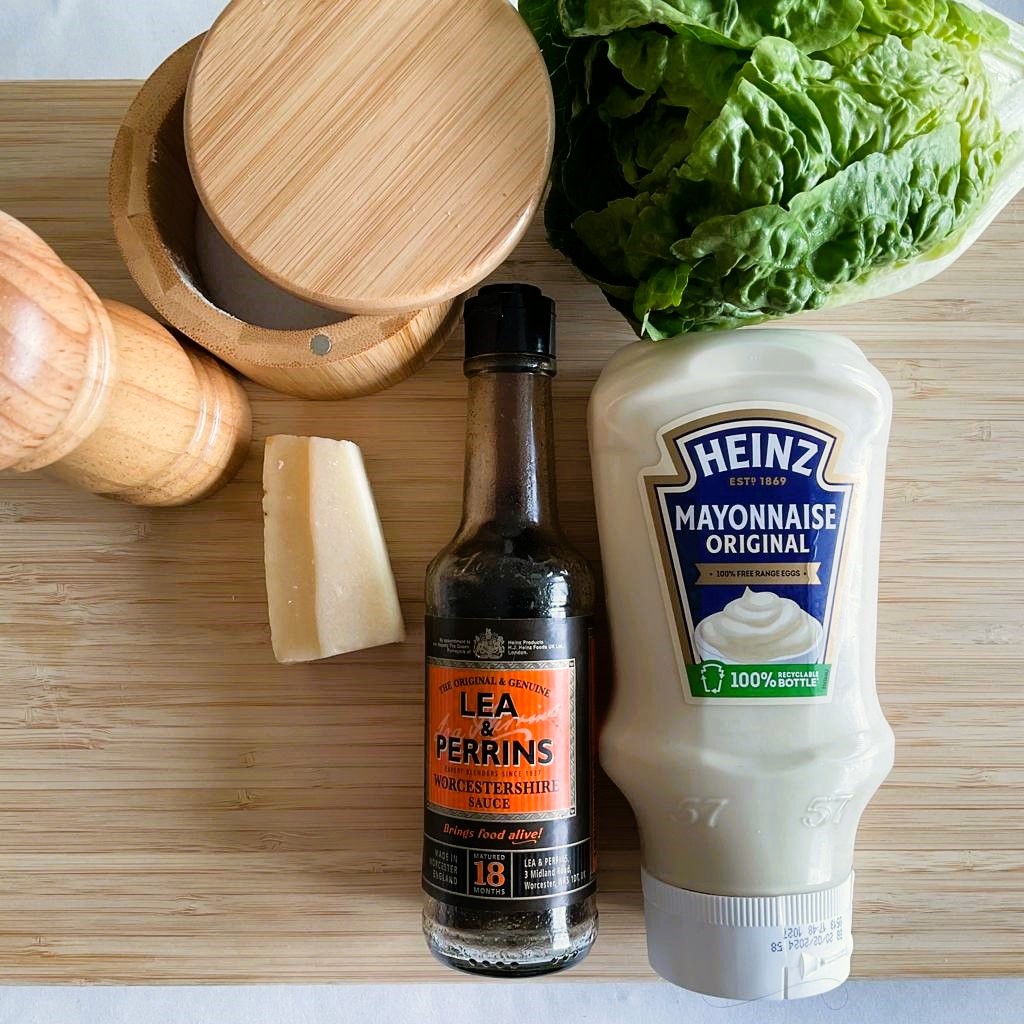 - Mix together 1/3 cup of mayo, 1 tsp Worcestershire sauce and 1 heaping tbsp freshly grated parmesan.