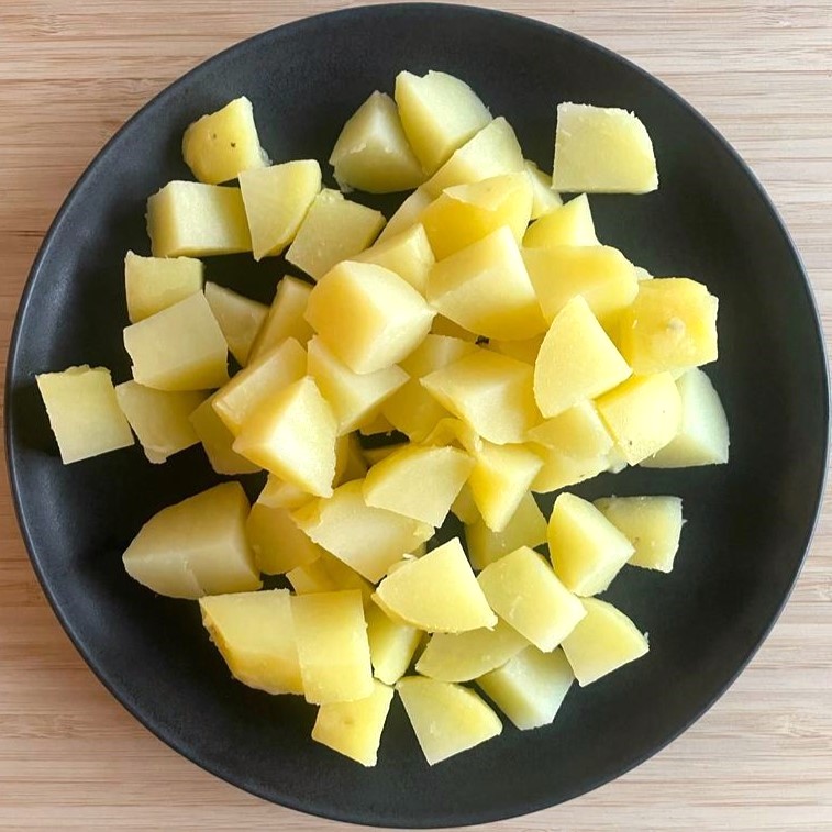 - Drain the potatoes, peel and dice into bite size pieces (picture 1).