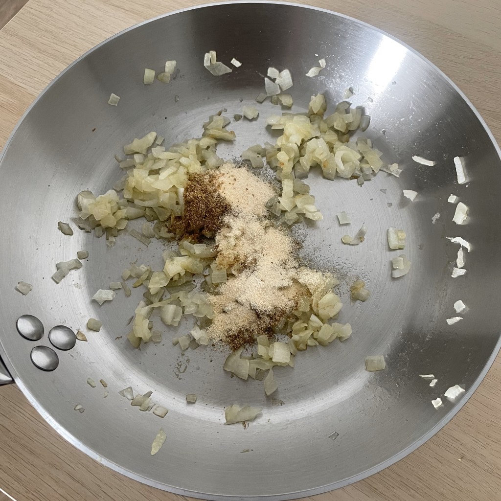 - Add 1/2 tsp of cumin powder, 1/2 tsp of garlic powder and 1/2 tsp of onion powder.