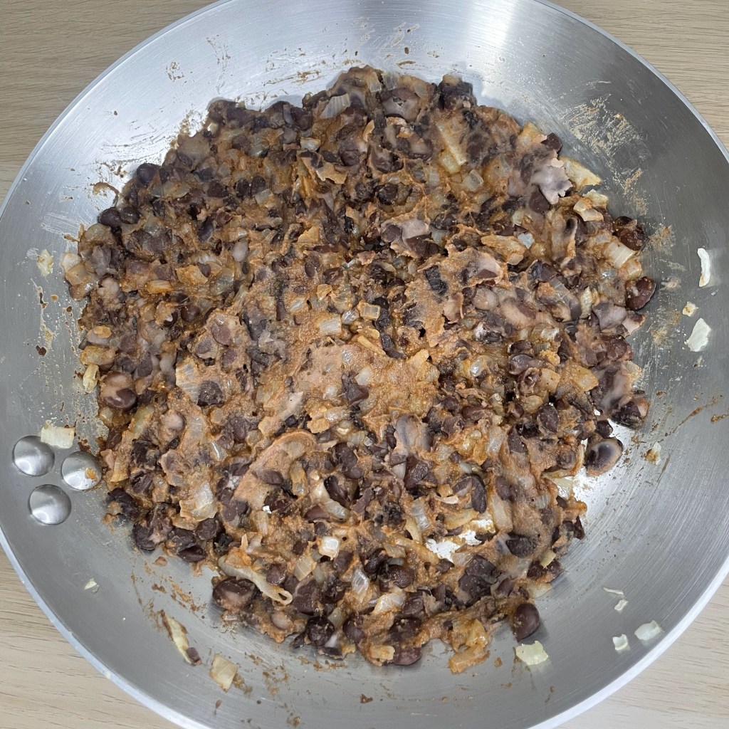 - Mix well, mashing the bean with the back of your spoon or spatula.