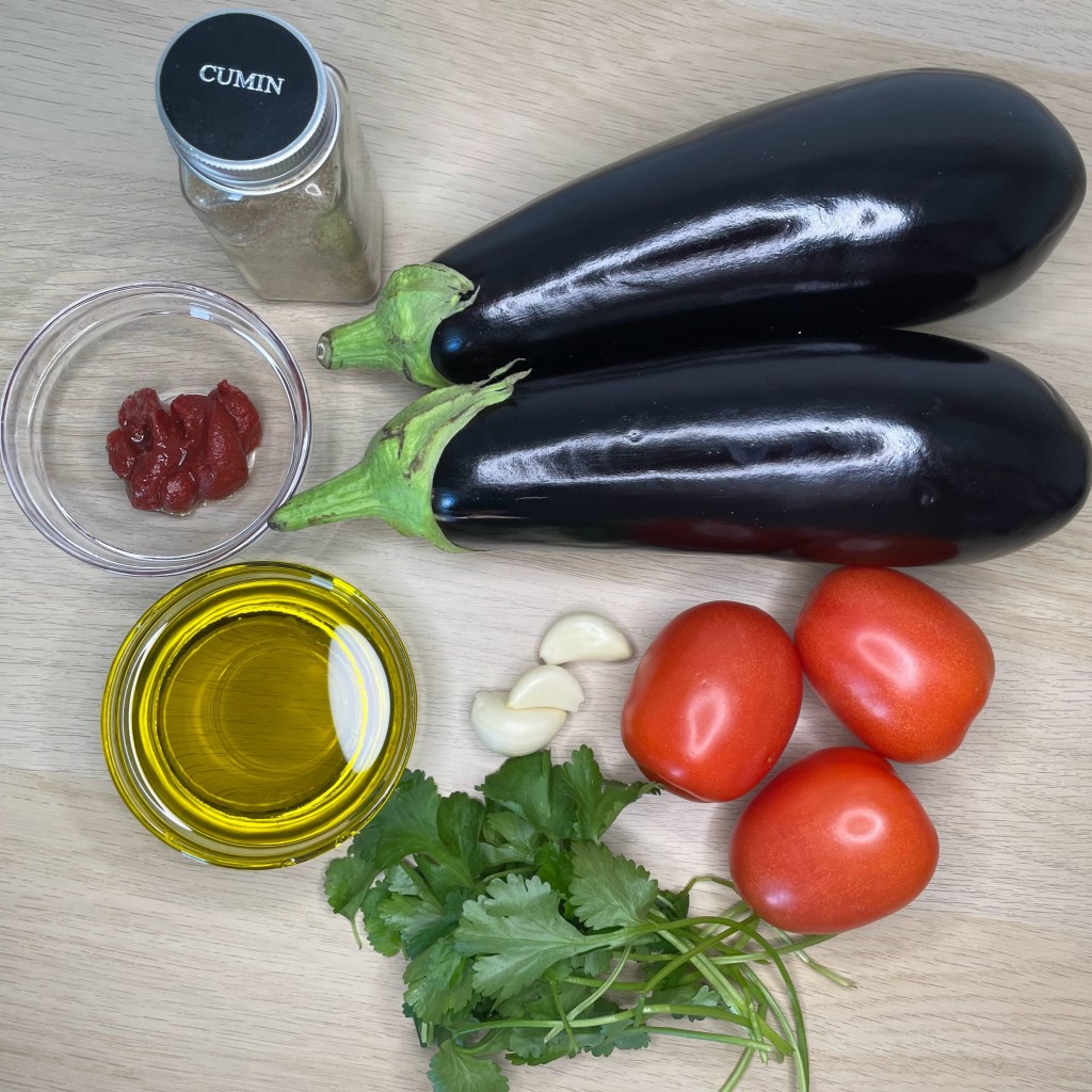 Creamy aubergine dip packed full of Mediterranean flavours of cumin, garlic and tomato. Great as a sharing platter or starter served with a warm crunchy bread. Don’t let the time deter you most of it is “passive” cooking to blacken the aubergines in the oven, the rest basically makes itself.